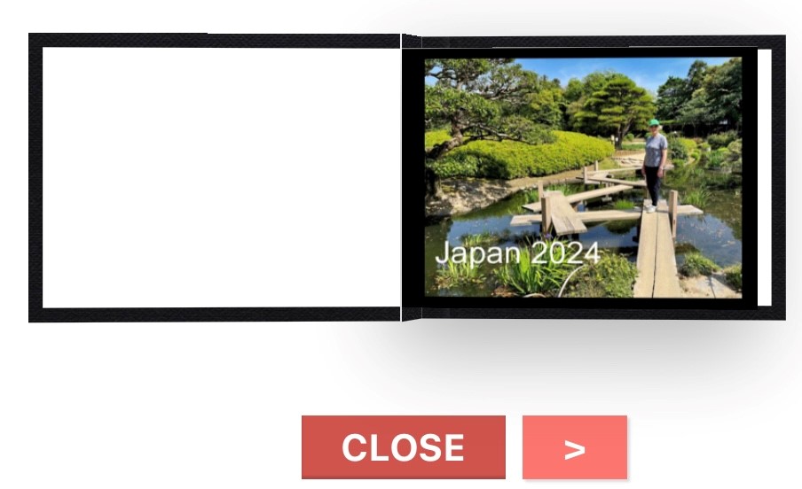 If you would like to view the book, click here: Japan 2024, then click OPEN and turn the pages using the > below the title page, as seen in the image below. It is also possible to order the book from the albumworks link.
