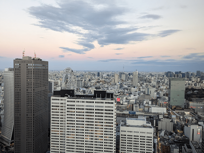 Tokyo Metropolitan Government Building Observatory Room (across the road from Keio Plaza): https://www.yokoso.metro.tokyo.lg.jp/tenbou/
